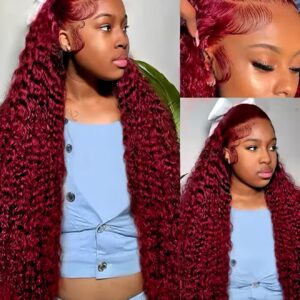 Raw Indian HD transparent lace bone curly 99J color 100% Human Hair Lace frontal 180 Density 13×4/. 24, 26, 28, 30 inches