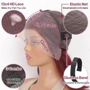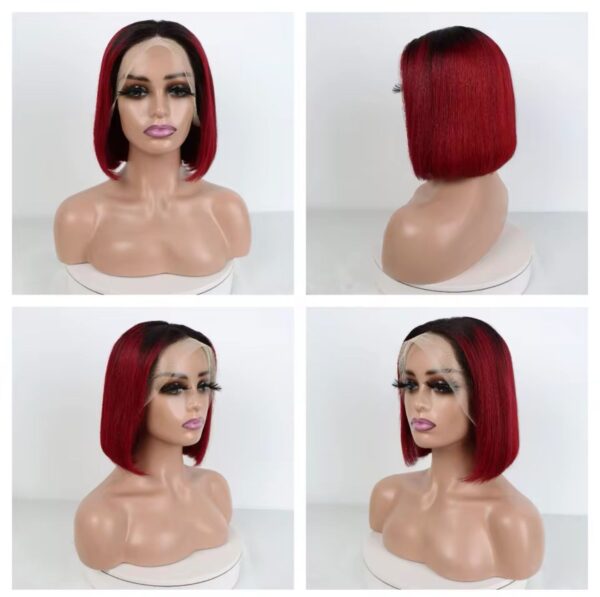 Raw Indian HD transparent lace bone straight Bob 99J #1B color 100% Human Hair wigs Lace frontal 180 Densiy 13×4